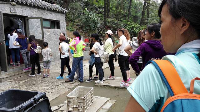 有女人多的地方就是麻烦,这么多的人占据着中天门的两个厕所,排上了老长的队伍,唉,为什么刚刚没人的地方我不去呢,排着吧,就这条件啦。