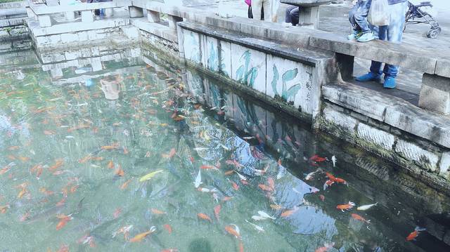池里有鱼在游来游去,引得我垂涎,是红烧好呢还是清蒸好,但是可以肯定的是清泉出来的一定好吃。小伙伴笑哈我说,你就是个吃货啊。哈哈哈哈