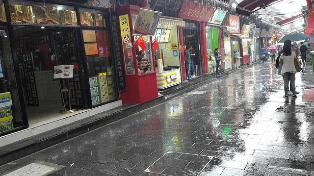 到了芙蓉街上就下起了雨,一下子就哗啦啦的下个不停,把人都给吓的躲了起来,难得见到这条繁华的街上居然没什么人。