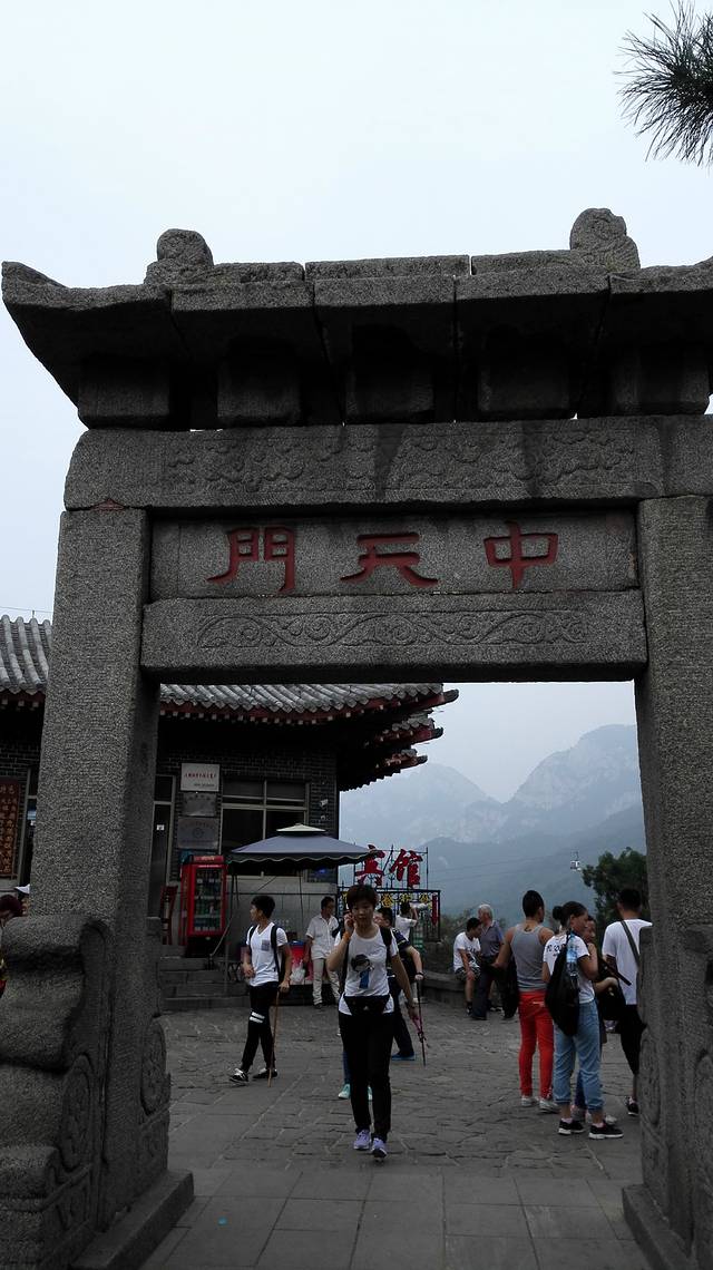 当我们7点40分到达中天门的时候,才知道为什么我错了,因为很多人都坐大巴车来的中天门才开始爬山的,好多跟团的和户外组织,密麻麻的人啊。唉,我勒个去。修整一下,吃个泡面和小肠,填饱一下肚子,当然泡面我是不可以吃的,那就来点香蕉吧。哈哈。