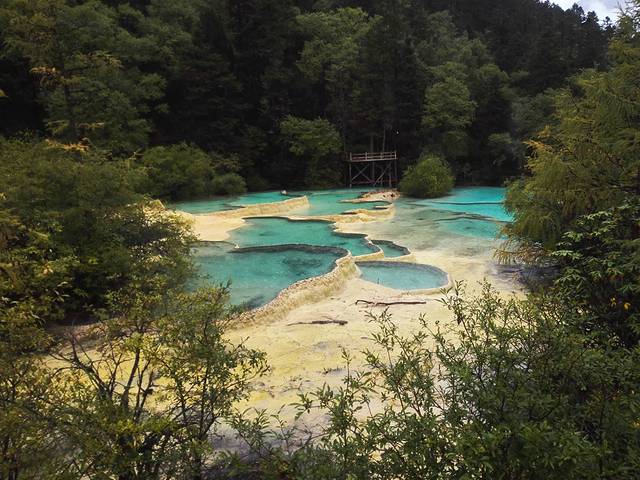 早晨5点半起床,大概6点半打车去九通汽车站,坐上去黄龙的汽车。黄龙的海拔为3500米,坐车大概3个半小时,在去黄龙的车上,我们已经跟车上的乘务员订好了下午返回川主寺的车票,因为晚上要赶去重庆的飞机,在车上我们预定了重庆的酒店,酒店免费接机。到达黄龙后门票200,索道上行80,然后由山顶往下游览,黄龙最值得看的是五彩池,沿途往下走也会看到其他的美景,看过九寨之后的美,再看黄龙也是有美丽之处的。从山上到山下我们用了3个多小时,在黄龙会有高反的,我的身体没有高发,但是头涨的很疼,因为海拔高,低压低氧所以才会有这种反应。然后坐汽车返回川主寺汽车站,打车去九黄机场,飞往重庆。