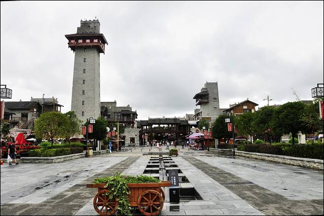 一点半出发,经绕城、成绵、在绵阳南下高速,四点左右到达北川新城巴拿恰。巴拿恰是羌语商业街的意思,北川新城的巴拿恰以羌式建筑为主风格,是主打羌文化游购娱的综合性商业步行街,特色十分鲜明。