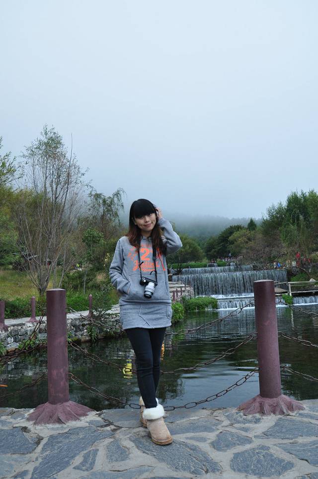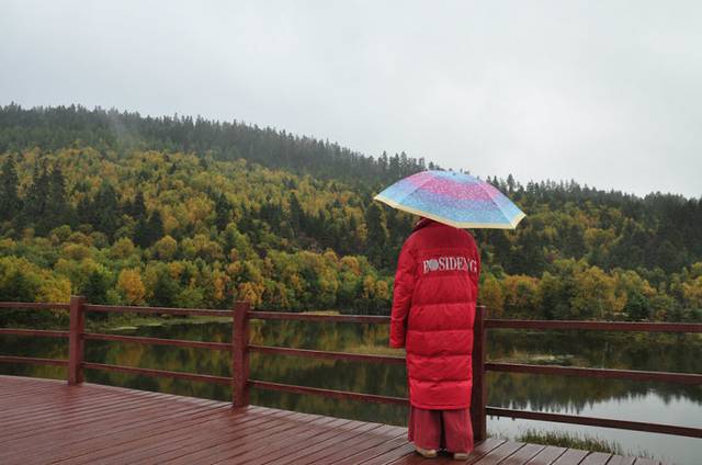 这张我自己都不认识自己了,租了羽绒衫,海拔3000多米的地方,天还是很冷。下着雨,吹着风,伴着阵阵的肋骨疼痛,第一个景点是步行3.4公里。