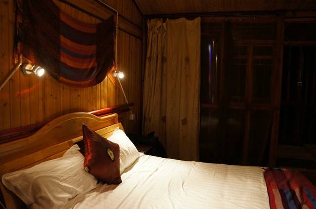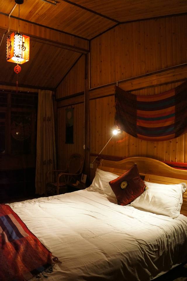 我们的房间很古朴,但温馨浪漫,房间顶上有一个天窗,把帘子拉开,就能躺在床上看星星。这是多少人小时候的梦想。