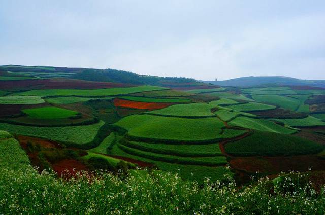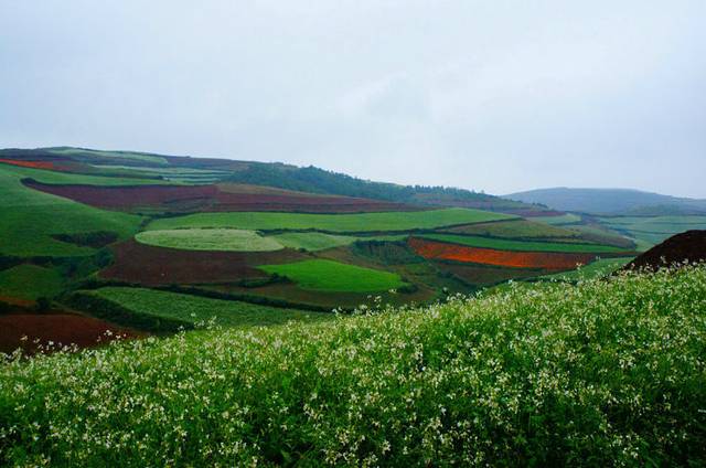 昆明是温暖的,充满我最爱的阳光,气味都是清甜的,可是不得不接受的是火车晚点,我们容不得在昆明半刻逗留,必须马上抽身前往我们的第一站-东川红土地,没有攻略,找车的一系列过程已经不想多说了,一如既往的凌乱,不知所措。国庆期间,东川车票竟奇迹般的售完,当时才中午。在无数次希望又绝望的过程中决定包车前往,而且只到东川,不到红土地。150元/人,少一分不拉,车子超载了2个人。我把大包小包全部放在自己的膝盖上,车程大约4小时,到后面简直是大腿抽筋了。不过现实总不如计划的那么顺利,泥泞的公路发生了车祸,车子被堵了一个小时,到达东川已经是下午6点。当天是9月30日,中秋节,在小面包上得知,并不是所有司机愿意上去红土地,不行的话只能在东川落脚了,不过他愿意帮助我们,一个90后,却长着一张70后沧桑的脸。