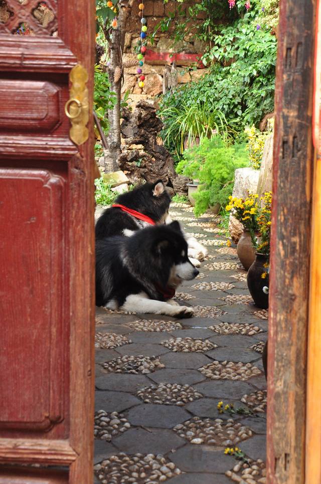 随束河逆流而上,很方便的找到了我们的客栈。客栈老板很信任我们,没有办理登记,告诉我们已经很晚了,就先入住吧。我们的客栈位于2楼,有漂亮的小花园,可以闲聊看书发呆晒太阳,超级喜欢这里,哥哥又开始YY以后要开一家客栈。