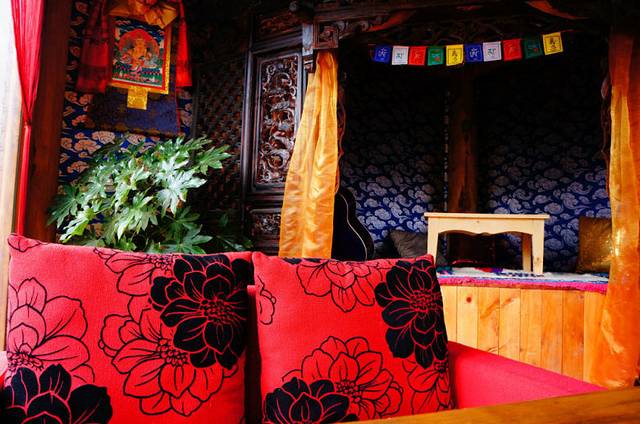 这是一座温馨的客栈,坐落在独克宗古城,我一进到古城中,我就知道,我喜欢这里,非常少的人,宁静,有阳光,还有中国最大的转经筒,充满藏族的感觉。这里营业的小伙子并不是老板,是一个来香格里拉玩的小伙,边打工边行走,来香格里拉已有一个月,进来的时候沙发上坐着一个恬静的女孩,看着书。小伙子说我上午工作,她下午工作,我们不工作的时候就出去玩。这是何等的生活,这是哥哥向往的生活,是我不敢向往的生活。这边浸透着梦想,很美好