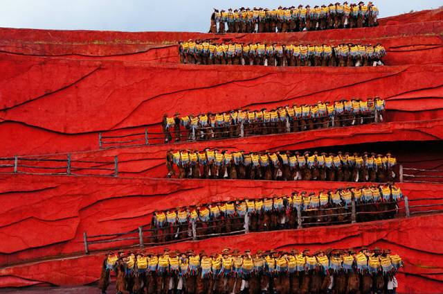 丽,包括穿着的人;我看到原始的风情,喝酒用大碗喝,不拘事体,酒是什么,就是丽江人的一种生活,一种生命的燃烧,无关乎忧乐。背着竹篓行走在蜿蜒崎岖的山道上,身体是前倾的,身体成柔美的弓弯曲。她们行走在高原的沟沟坎坎,也走在生命的路途,但她们没有流露生活的艰苦和无趣,因为有歌从心中泄出。脚印盖到哪,歌就铺洒到哪。歌声让她们变成生活的精灵,形象地诠释她们纳西族对劳动的态度;历史是久远的,历史不曾忘记。马帮古道既是丽江一景,也是沉重、漫长的历史一页。那些过往的岁月,古道上留下斑斑汗迹。一支马队,一群或是三两匹,跋涉在不见人烟的崇山峻岭中,画幅可想而知是多么的孤寂和艰难,充满着风雨。但由此丽江也被历史记住,留下值得炫耀的一笔。丽江人用歌舞演绎,全场从不同角落出来几十匹马,风萧萧的姿势,马不停蹄地奔逐,让我们恍如置身那个历史境地。最感伤的一幕是殉情的演出。古代纳西族都有殉情之说,指腹为婚的男女抗婚,但又不得圆满,只好与心爱的人双双赴死,以死表钟情。玉龙雪山的云杉坪据说就是他们的殉情之地。凄美的传说,演出的场景当然让人千回百转,柔肠欲断。看着殉情的一对男女在众人的极力挽留下渐行渐远,我们知道又一对青春躯体消失,美妙的灵魂随风而去。纳西族是有情的民族。有情的不仅是他们对爱情的坚贞,还有他们对人们的祝福。在演出结束前,他们全体亮相,然后指导全场观众与他们一道向玉龙雪山祈福。玉龙雪山是他们的神山。我们虽然因为大雾没能感受到玉龙雪山
