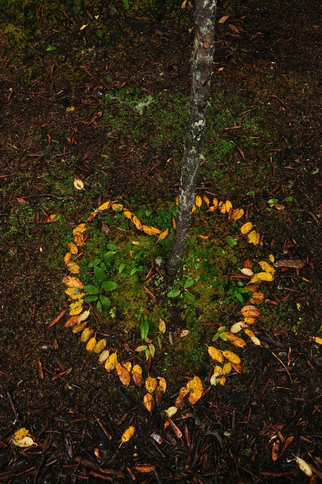 不知道哪个有爱的人把枯叶拼成了爱心,真Q哈哈