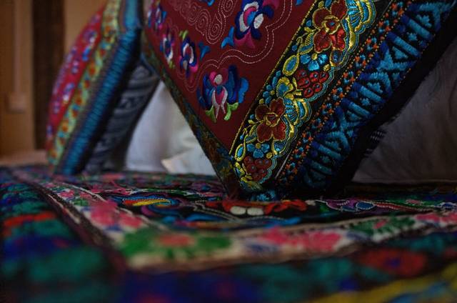 我们的房间充满着云南特有的少数名族气息,回来之后就有点中毒,买了云南没有买到的床垫和抱枕套,见下图