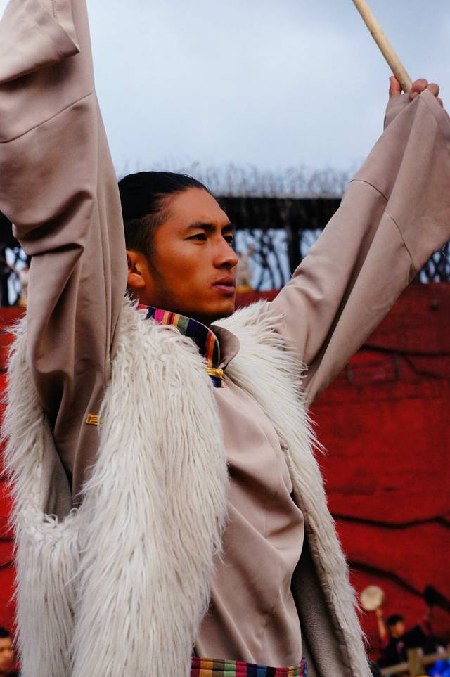 东巴谷小伙子的表演,表演完可以赏钱。