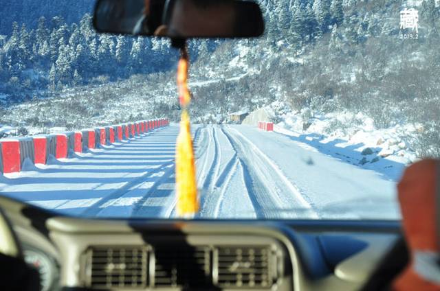 早上6点,天空还是深黑的绒布色,我们便在黑夜中出发了。可是车子行驶,慢慢的万里晴空变成鹅毛大雪,车子在雪道上行驶,一切看起来并不乐观,大雪封山,那是大家都知道的常识,只能暗自祈祷顺利到达。