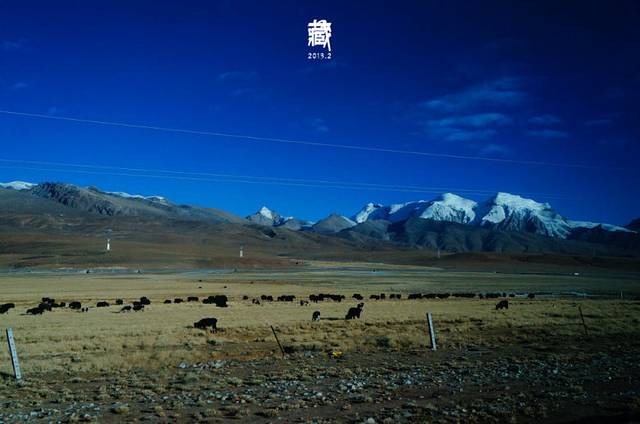 车子继续一路行进,路上美得不像话,我们在连绵雪山中穿行 成千上万只黑牦牛在草驮上吃草。