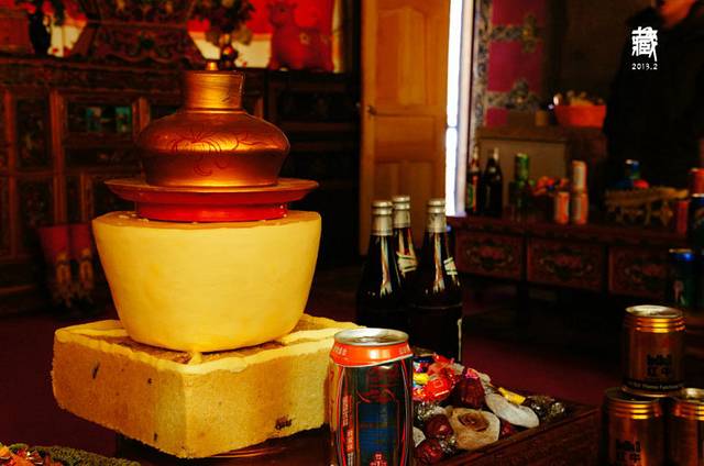 车子在下午1点才会到达景区,中午路过司机家,进去小坐了一刻,司机是藏人,典型的藏族之家,长长的一排沙发和茶几形成一个正凹形,茶几上放着糌粑,藏区最流行的红牛,还有一些糖果,司机让我们多吃点,可我真想不出可以吃些什么,捏了一点点糌粑放入口中,却连打了三个恶心,形容不出的奇怪味道,还是吃了几颗奶糖,清了清咽喉中的咸涩味蕾。临走的时候,拿了一罐公牛,打算作为路上打发时间的零食。