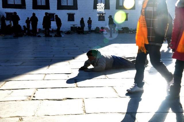 虔诚的人儿依旧拿着转经筒,匍匐着磕长头。信念在他们心里根深蒂固。