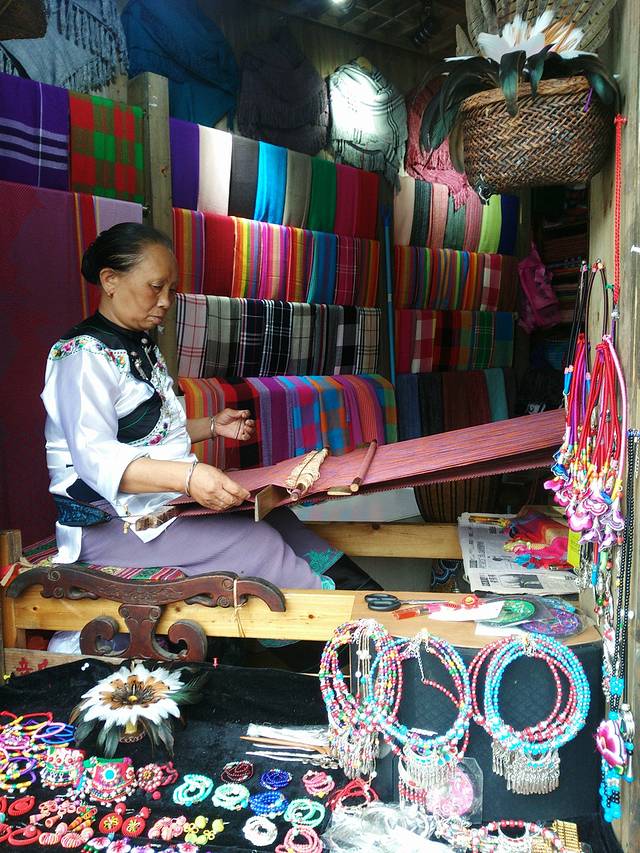 在织围巾的苗族婆婆