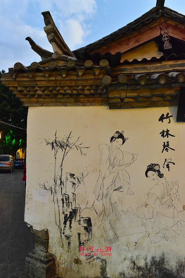 即便是随处一家小店,墙面上却有美妙的壁画,寥寥数笔,却神形兼备,风韵宜人,建水真个是出文化人呢!