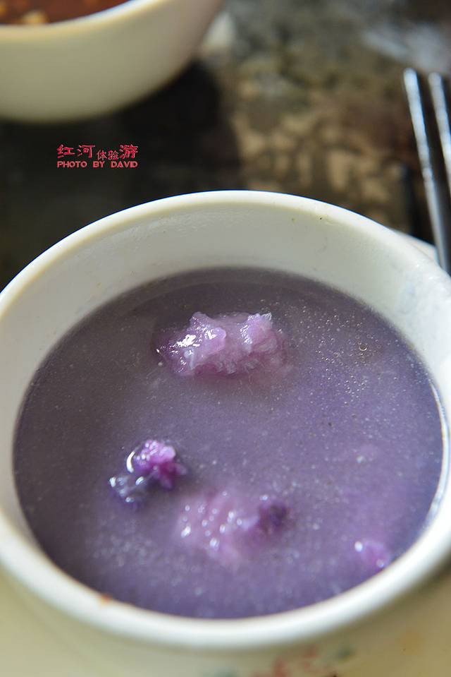 当地特产的紫山药哟,不是任何色素做成的,而是天生就是紫色的,很多人一开始会以为是紫薯,吃到嘴里才发现是山药的味道。居然和河南的铁棍山药广告词一样,说是男人吃了¥%%……&女人吃了*&#%,为什么不多种一些?因为地受不了~~~