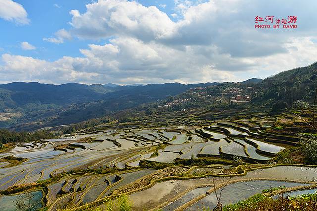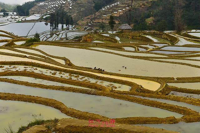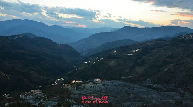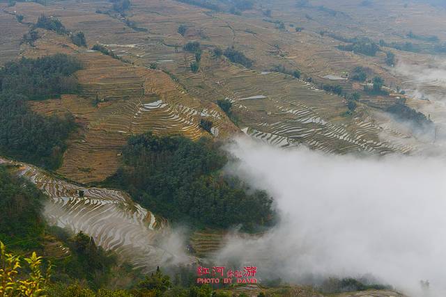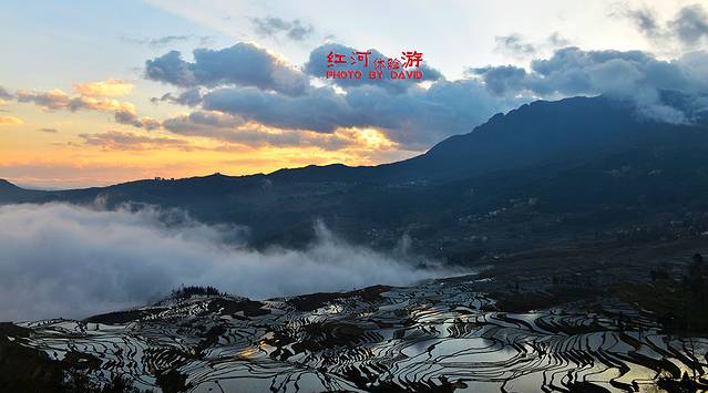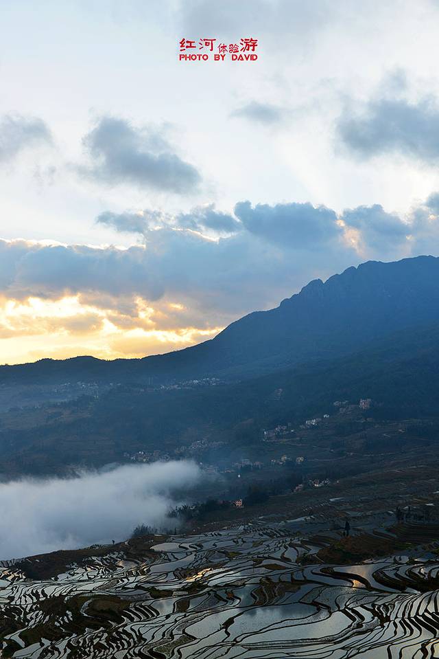 如果,太阳能够大开,云霞全部染红而映射到梯田里,该是多么炫丽的画面呀!