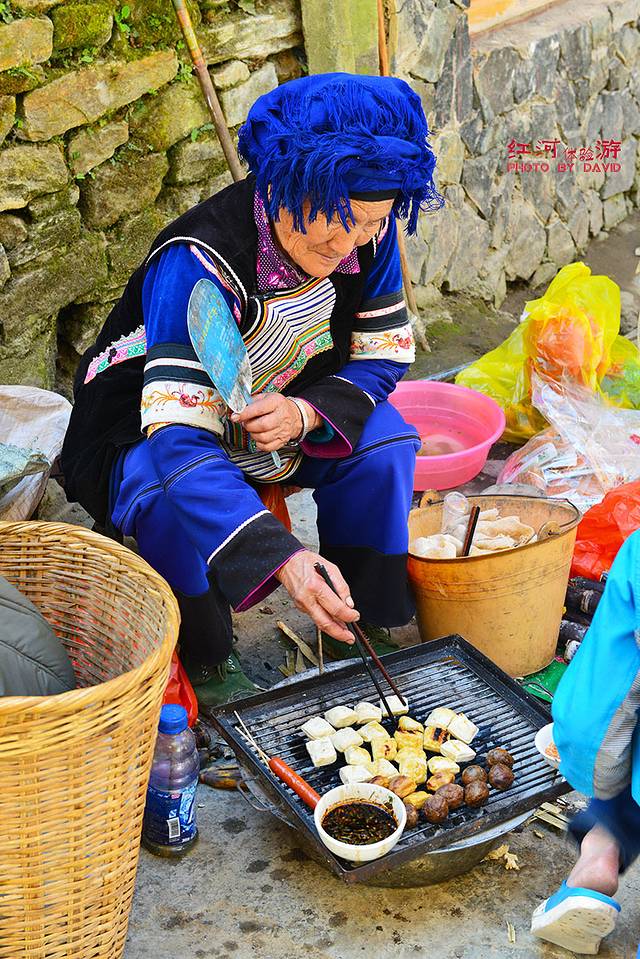 随处可见的烤豆腐,真的是这里居民和游客的最爱。客人吃多少,摊主是拿玉米粒来计数的,吃完数一下一旁的玉米粒就可以结账了。