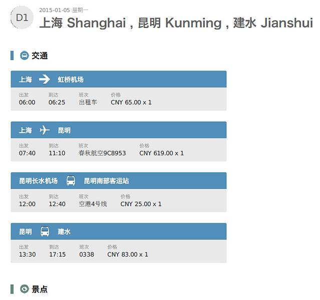 12月30日晚上,我用网上的行程助手,设计出了完整的从出行交通、景点安排、目的地住宿、特色餐饮品尝等各方面集合的行程设计稿,并在31日上午发送给了对方。
