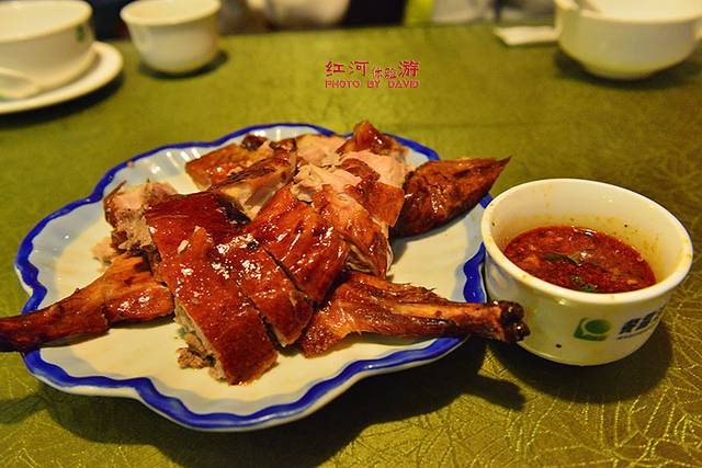 既然名叫烤鸭店,自然要品尝它家的烤鸭餐,鸭子一点都不肥腻,特别香脆,而蘸料更是有云南特点,是辣椒蘸水哟,呵呵。