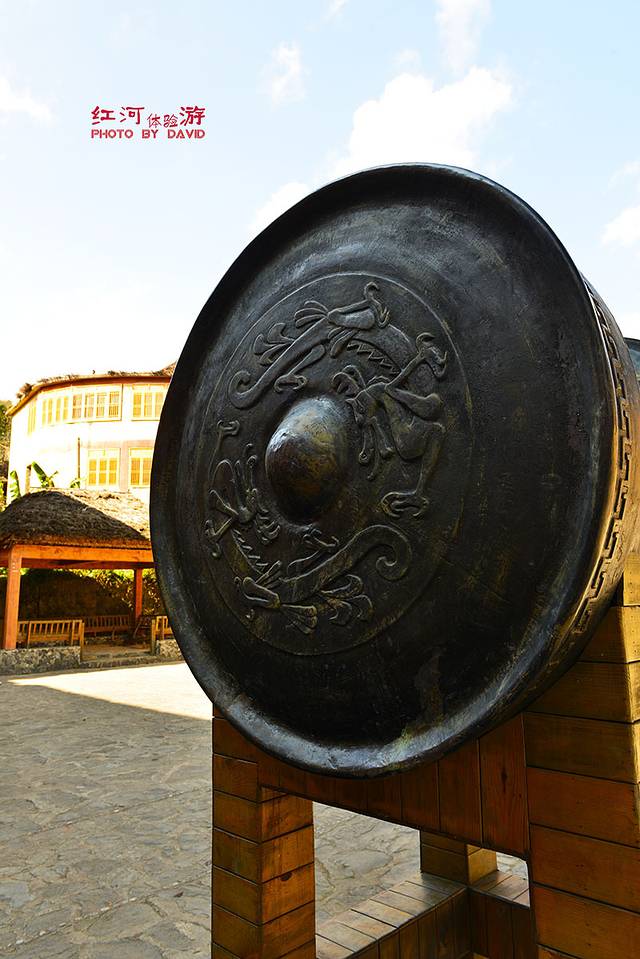 村中心的屋子前,摆放着硕大的铜鼓,应该是村寨召集聚会或者集合退敌用的吧?