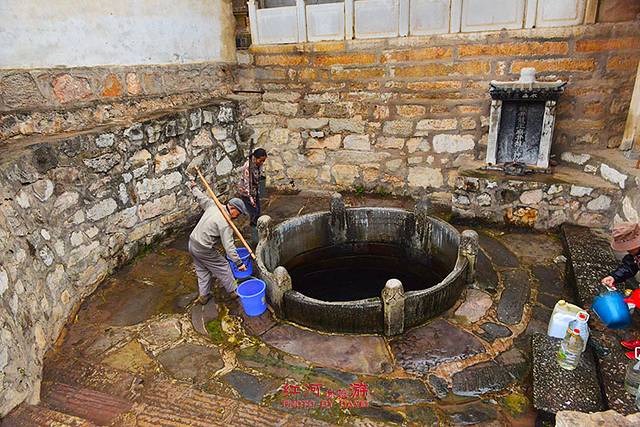 来到井边,这确实是我见到过井口直径最大的水井了。有不少居民在这里挑水,询问他们,说家里的自来水用来洗菜洗衣服,而饮用水还是喜欢喝用大板井水烧的开水,大板井的水烧来不起水垢。