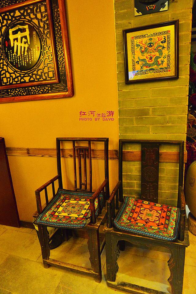 大堂里这壁厢摆放的椅子,一看就很有年头了,和周遭的装修环境还是很搭配的,为客栈加分不少。