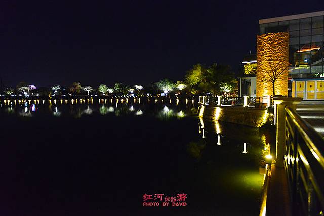 夜晚的小桂湖杳无人迹,只有我一个人在这里观赏夜景,远处传来的是大妈们在朝阳楼跳广场舞“小苹果”的音乐声……