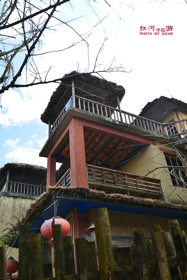 从公路往山坡下步行,看到好几家哈尼族的餐馆,都开设在自家的小楼里,楼上挂满了玉米棒,很有居家风格,是让人无拘无束可以自由放松品尝美味的地方。