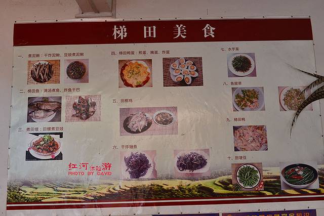 看着墙上的梯田美食,直接就可以点菜咯,来这里,就品尝最富有特色的哈尼梯田食材料理吧!