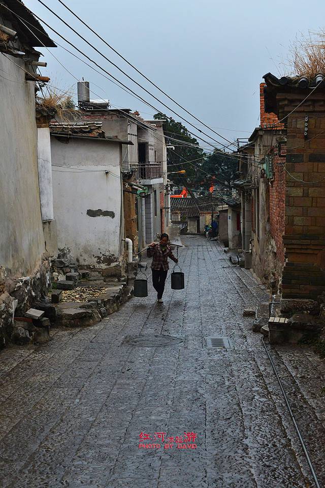 雨后的小巷特别幽静,路上就能够看到担水的建水人。