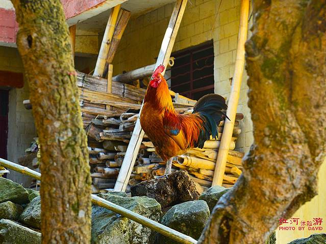 走在村落里,看到一只威风凛凛的大公鸡跳在大石头上,睥睨地看着我,警惕我这个闯入它生活的陌生人。