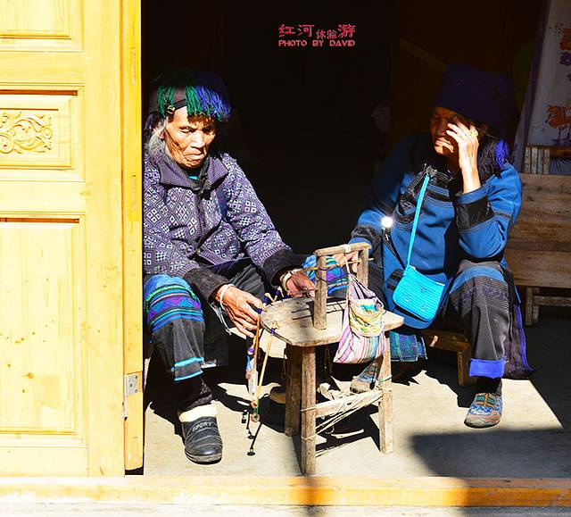 进入村子,没有几个游客,因此可以看到原生态的居民生活场景,而不是民俗的表演。哈尼族的老人,正在自家门内晒着太阳,手工编织着日常用品。
