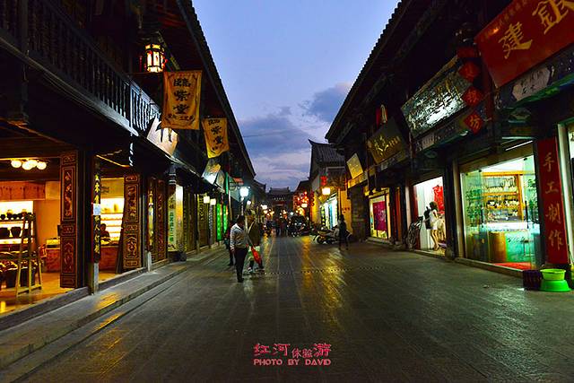 由于此行时间安排,在建水古城中的游览时间为两个晚上和一个上午,因此街景多为夜景,而夜游古城,也是更有访古探幽的意境呢!