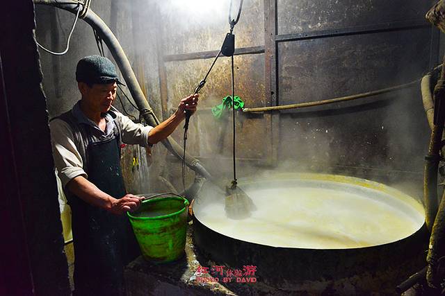好在现在熬好的豆浆,已经不需要再端起大锅或者用勺子舀了,直接用抽水机和管道就把豆浆抽取晾凉点卤了。虽然是手工作坊,也使用了一些先进的科技,呵呵。