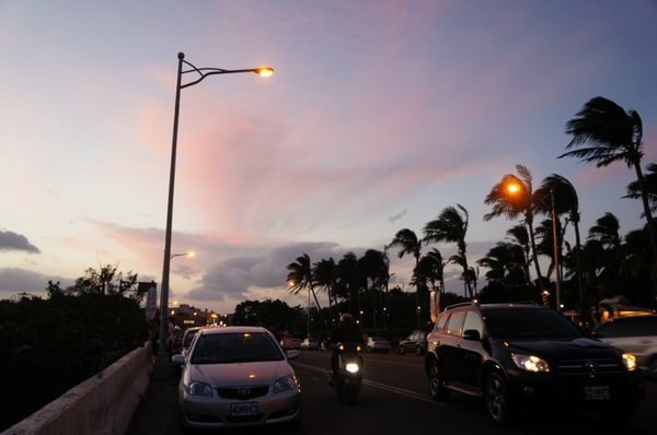 第二次抵达台湾,空气还是湿湿的,和上一次一样。 从高雄的小港机场奔赴垦丁需要两个半小时的时间,一路上偶有小雨绵绵,但大部分的时间仍旧阳光灿烂,伴随着日落和逐渐迈入视线的绵长海岸线一路向南,天空慢慢变灰变暗,抵达垦丁的时间是十八点三十,这时的天空已经是漆黑一片,月亮已经升起高高的挂在那头亮的刺眼,我才明白,垦丁的夜来的似乎早了一些。