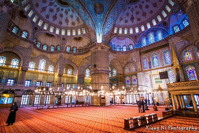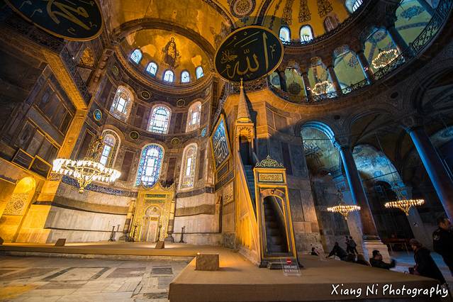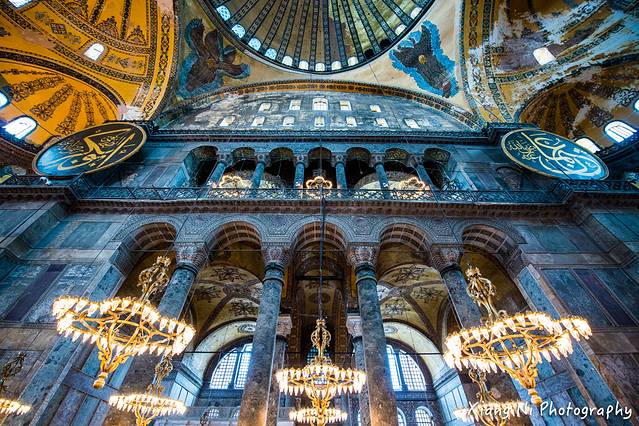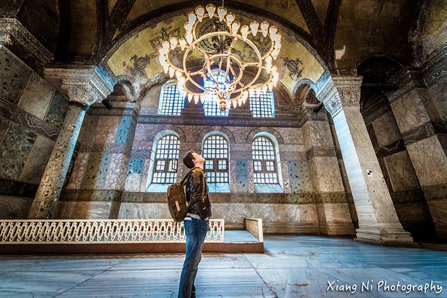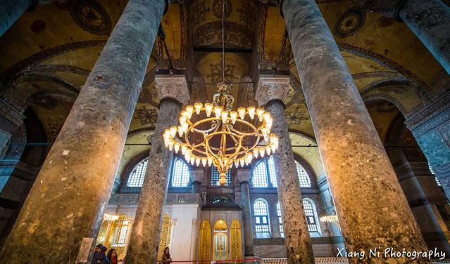 这里是圣索菲亚大教堂,我觉得这里最吸引人的就是吊着的灯光,以及映衬的壁画~