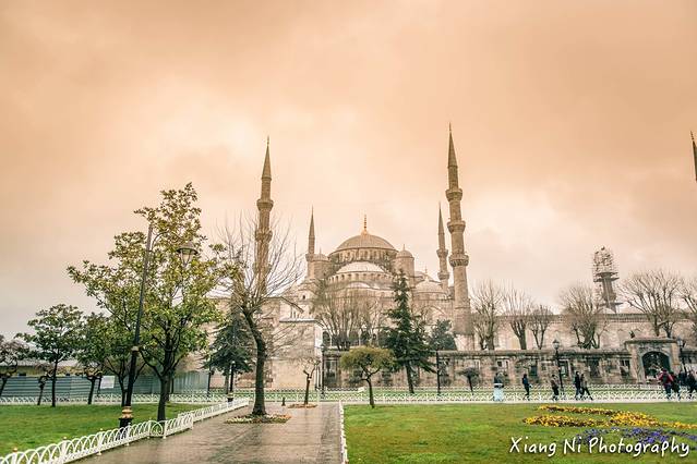 虽然天是阴的,但我觉得这并不影响蓝色清真寺的面容,相反更加增添它的肃穆与庄严~