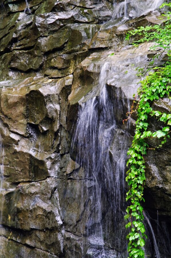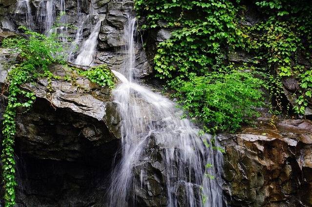 走到瀑布跟前,只见那飞泻下来的银链,在阳光下闪烁,使整个瀑布看起来更明亮了。银白色的水流像老爷爷的白胡子,一缕一缕地倾泻下来,有几道水流好像有急事,匆匆的往下冲,一不小心,撞在岩石上,水花四溅,如飞珠碎玉般晶莹可爱!