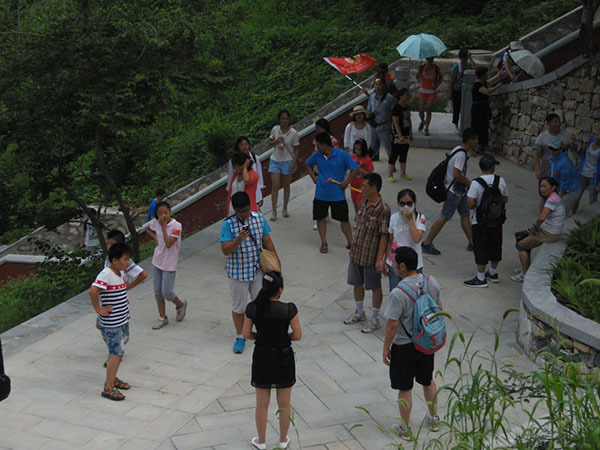 这里有个玉泉井,此井水永不枯竭,游客正在排队领取玉泉圣水