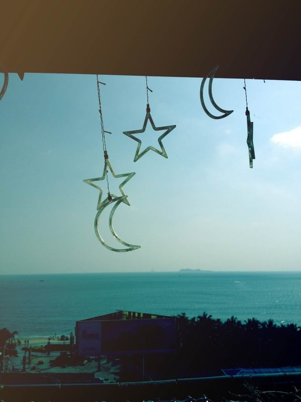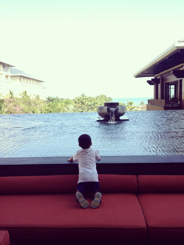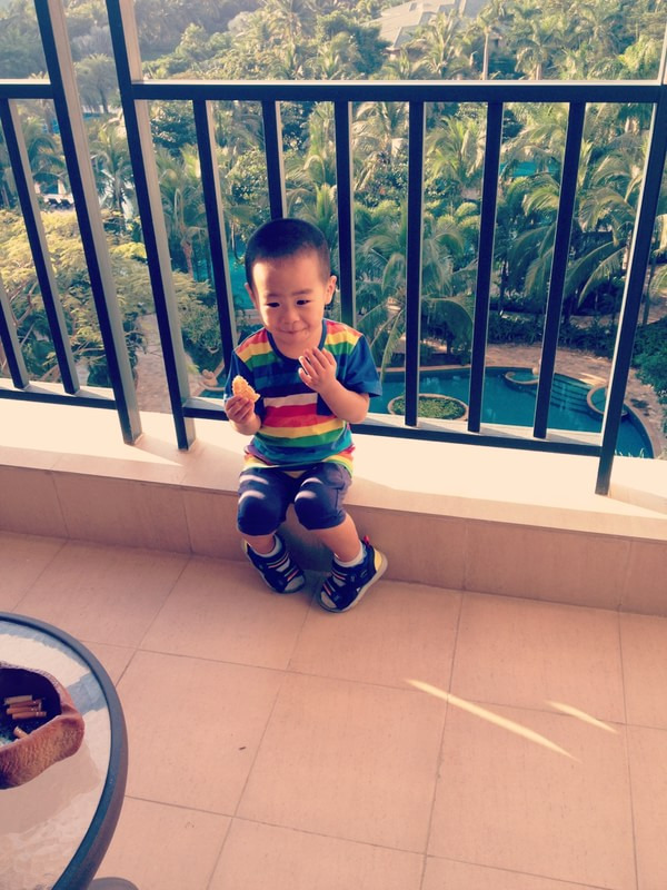 我们入住第二家酒店..海棠湾9号.更加Di高大上?爸爸在办入住.我在这看看风景.