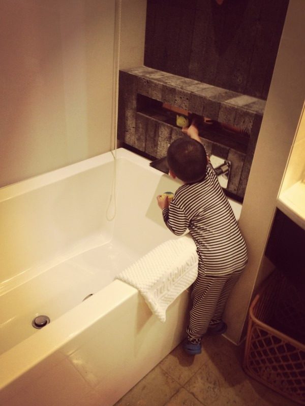 琦宝.最爱这个大浴盆.惊喜的是.还有两条小鱼.