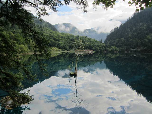 回到树正寨坐车到长海,这里似乎阳光照射不到,倒颇有些哥特童话风。