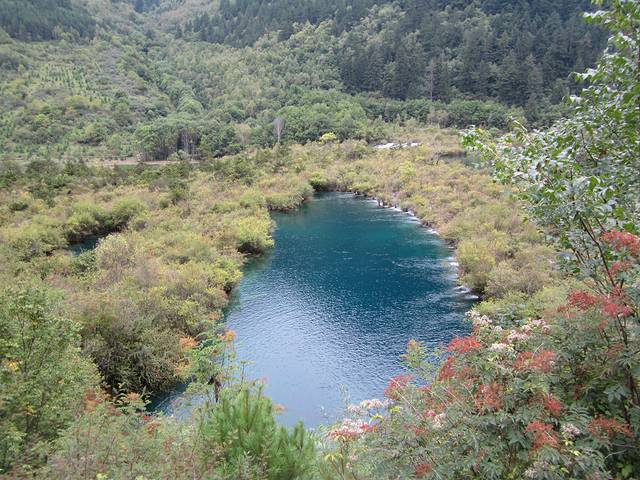 由树正寨下车,为了避开人流,反向游览,证明十个明智的选择,推荐一直由树正寨向下一直到芦苇海,没什么人,风景也很好,推荐由树正群海-双龙海-卧龙海-芦苇海,大概三公里,过桥由里侧栈道走,不过芦苇海外侧视野更开阔。由盆景滩可以坐上行游览车去长海-五彩池-原始森林-箭竹海(木有箭竹)-熊猫海。