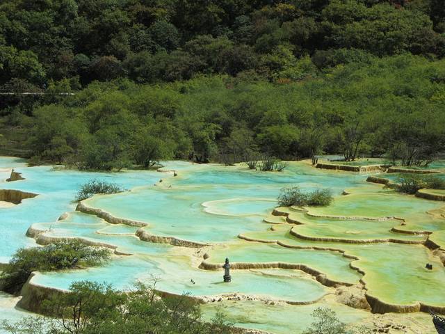 推荐早晨过去,坐索道上去,慢慢走下来,大部分旅行团都是下午过去。黄龙一定要天晴去,如果阴天下雨,色彩会黯淡很多,不如不去。黄龙最高峰岷山主峰雪宝峰,海拔5588米,最好去之前提现喝点红景天,红景天一般提前一周服用较好,如果是泡水喝需要更早一些。九寨沟去黄龙路上海拔也很高,仿佛走在云上。