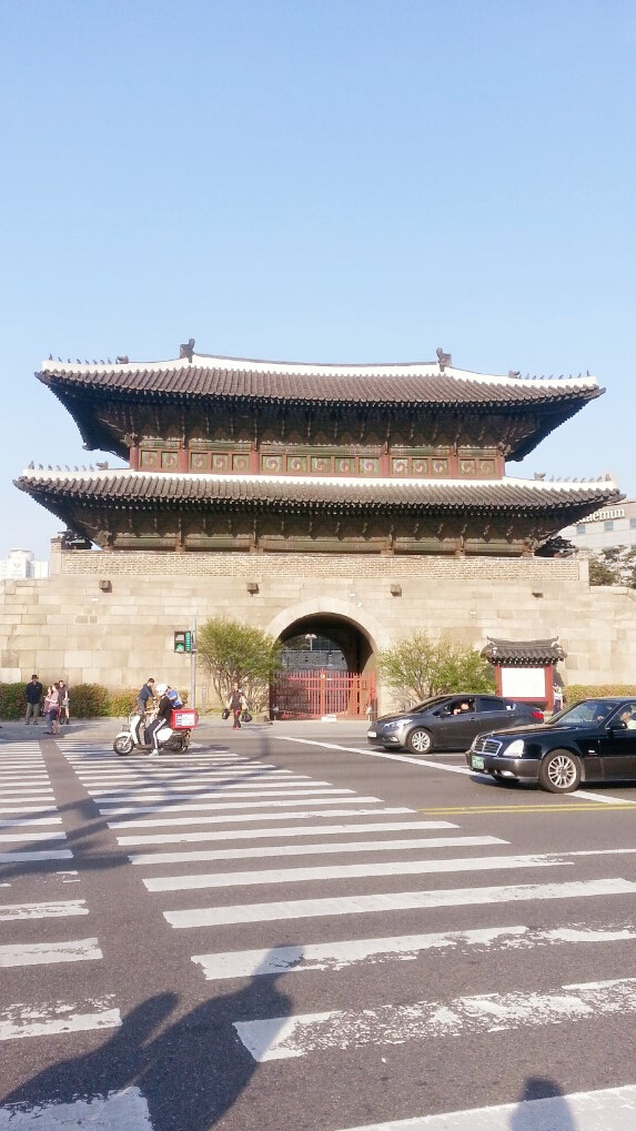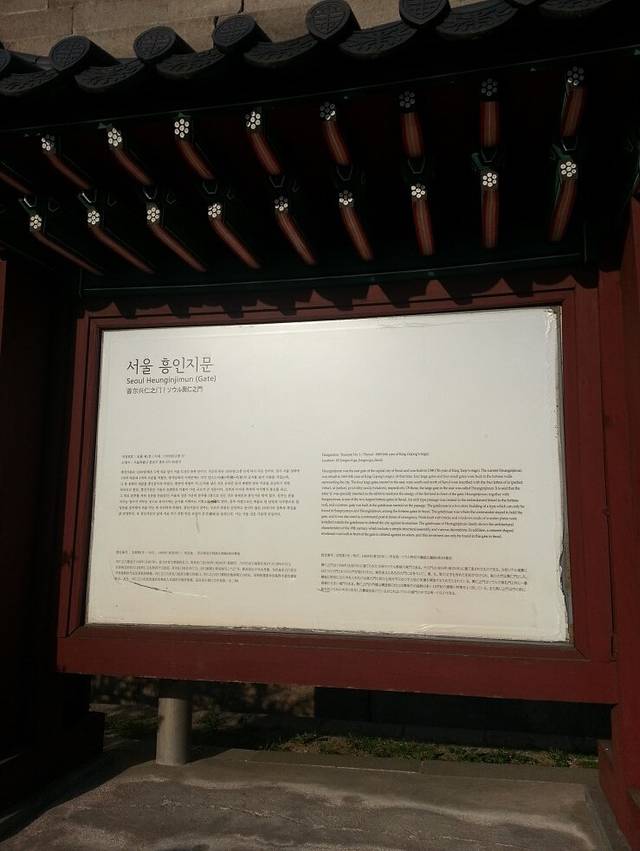 一直以为东大门就是购物的地方,原来这个城楼才是东大门的本体呢~我们一直走到城楼脚下,看了上面的中文简介,才知道这个真正的名字叫做“兴仁之门”,现在的是建于朝鲜时代后期,是受保护文物第一号呢~看看过去的建筑,有时候也别有一番感觉!