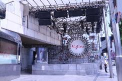 到达东大门啦~因为我们是上午去的,实际上韩国人一般都是下午或者晚上才出来逛的,所以路上就没有多少人~~不过路边还是有三三两两的小摊可以逛一逛,还看到个小小舞台,各种舞台灯真是多,如果晚上这里应该会有演出吧!