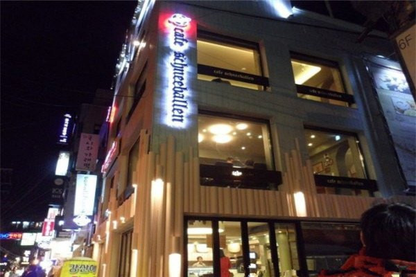 这家店别看外面没什么特色,里面的吃的可是很不错呢。店名为CAFE SCHNEEBALLEN 位于人气很旺的韩国首尔弘大,店面很大,里面座椅也很舒适,很适合来韩国自由行的朋友们,逛街逛累了休息休息~